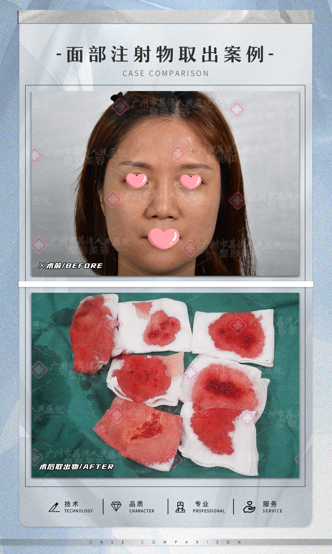 因为面部的活动,组织受到刺激,出现增生,且因为情况无法预料,生长的情况越来越严重,避免出现面部毁容的情况,于女士找到广州市荔湾市荔湾区人民医院,面诊,确认注射材料是生长因子,随后设计好手术方案,很快为于女士取出面部增生材料,恢复面部健康美观平整。