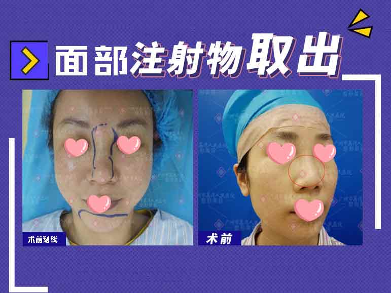 注射物取出比较难的一点是,材料具有游离性,随着肌肉收缩和重力的原因,很容易转移到组织间隙内各个角落隐匿起来,对注射物取出经验不足的医生,在取出时不仔细就很难发现,在取出后,就会出现复发的状况。