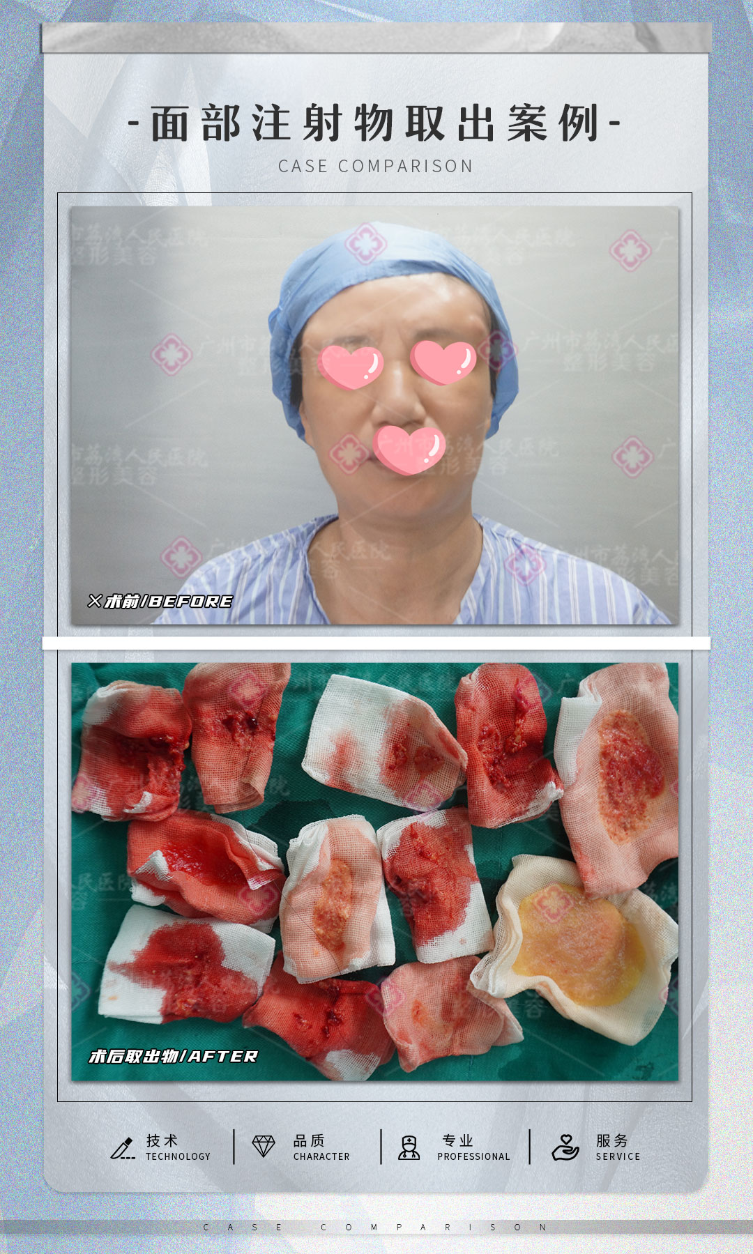 刚注射结束后,罗小姐感觉到自己的脸麻麻的,但是看着镜子里的自己,确实变漂亮了很多,化妆之后也看不出僵硬感,整个人年轻又漂亮。但是好景不长,过来了短短三个月,罗小姐就感觉到注射部位的"玻尿酸"有游走的迹象,然后越来越严重,整个脸都变形了,面部还鼓起了一个又一个包。