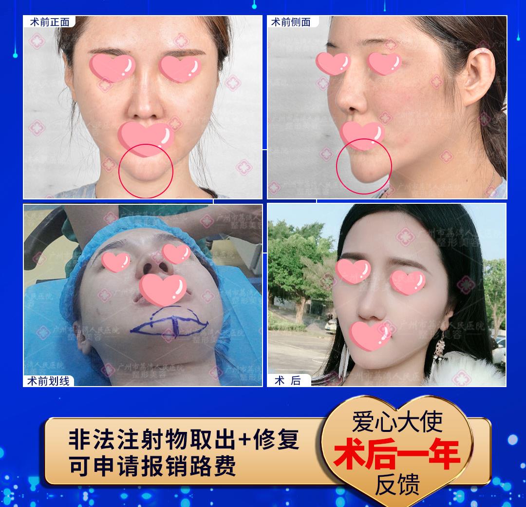 广州市奥美定修复技术研究院(原广州荔湾区人民医院)提示:注射物取出难度大,对医生资质和技术要求都很高,因此,在取出时,一定要选择正规专业的公立医院。而材料取出后,可能会存在一定的修复期,看上起组织并不平整美观,对于这样的情况不必太过担心,组织都具有自行修复的能力,经过一段时间的恢复,都能生长恢复到理想的状态,从而获得满意的修复效果。