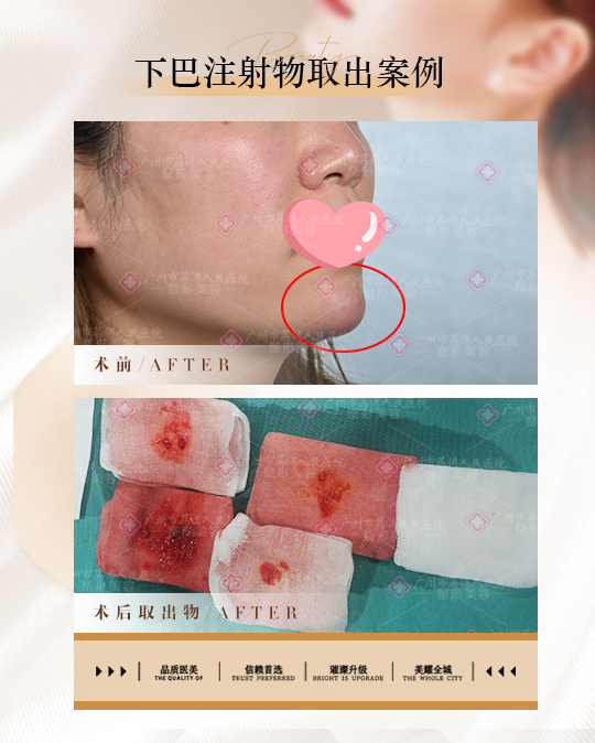 她当时是在下巴注射的,医生表示给她注射的是玻尿酸,对人体没有危害,是可以被人体吸收的,于是宋女士就放心的注射了。但是注射后过了两年多,宋女士下巴的玻尿酸不但没有被吸收,反而出现了其他异常正常,下巴变得红肿,而且两边还在向外扩张,导致下巴有变形的趋势,十分难看。