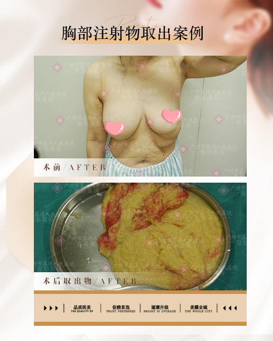直到今年,袁女士的胸部开始出现并发症,她觉得是时候该取出奥美定了,于是就到了一家医院进行咨询,那家医院直接就跟袁女士说保证取干净胸部的奥美定,经过诱导,袁女士就同意了接受奥美定取出手术,结果那里采用的技术却是早就被淘汰的抽吸法,不仅没有成功取出,反而出现了炎症。