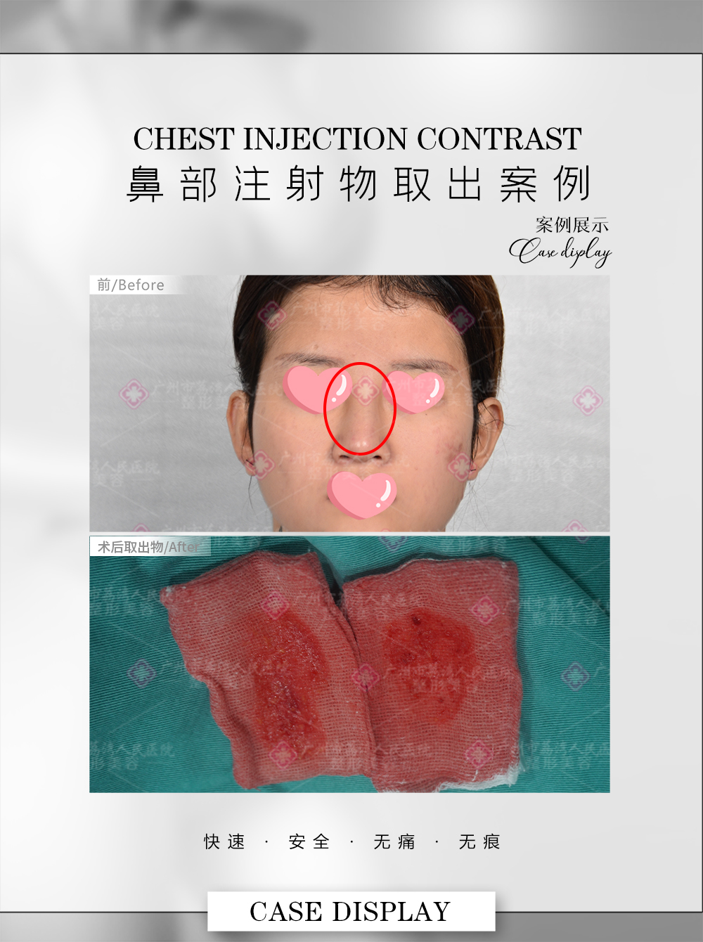 而如今鼻子已经出现并发症症状,必须尽快取出才行,为了自己的健康着想,陈小姐决定取出鼻子的奥美定,经过讨论,跟医生商量好手术方案,医生采用成熟先进的全息六维层离清奥术结合3D内镜,定位出奥美定分布的部位,然后在直视情况下避开血管和神经将奥美定取出,不伤害正常组织,同时植入生物补片进行修复。