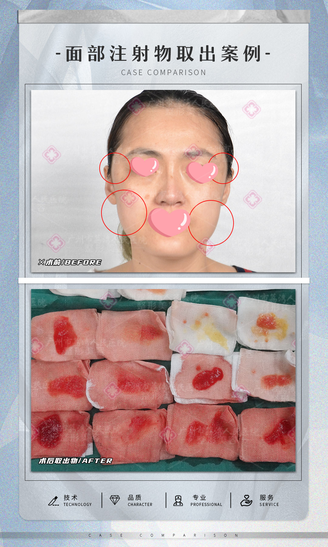 注射一个月后,李女士就感到有不适,后来面部越来越不舒服,用手触摸的时候可以感觉到面部硬硬号,好像里面有硬块存在,而且还出现了红肿疼痛,每天都要吃消炎药才能抑致这种不舒服,李女士内心非常担忧害怕。