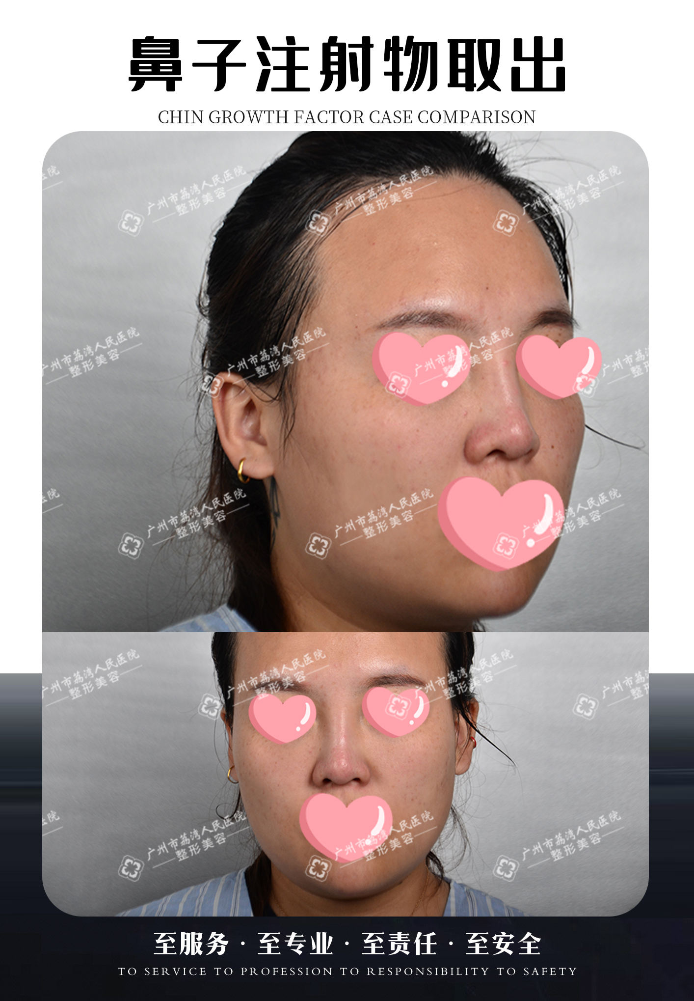 胡小姐回到家上网搜索,发现有很多人跟自己有一样的状况,而她们是因为被注射了奥美定所致,胡小姐害怕自己也是注射了这种物质,就连忙坐车去到广州市奥美定修复技术研究院(原广州荔湾区人民医院)进行检查。经过一番检查后,果不其然,胡小姐的额头和鼻子均是注射了奥美定,必须尽快取出才行。胡小姐听从了的意见,同意接受奥美定取出手术,采用全息六维层离清奥术,配合3D内窥镜,定位出奥美定的分布,在直视情况下避开血管和神经将奥美定取出。