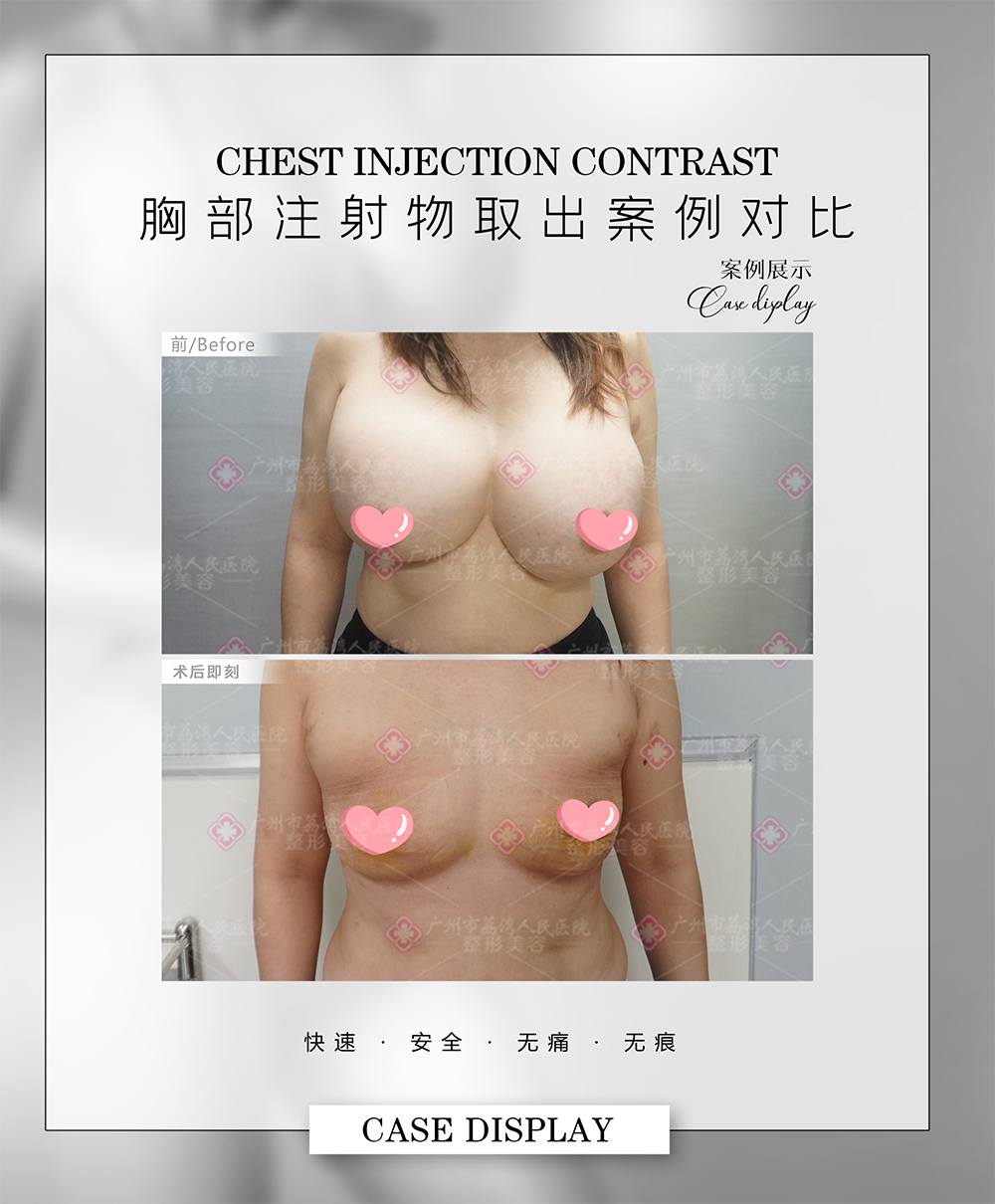 对此,广州市奥美定修复技术研究院(原广州荔湾区人民医院)整形美容修复医师表示,胸部注射物取出后能恢复原样,但是爱美者注射了不明注射物务必把握时机,尽早到有资质的正规公立医院就医,倘若确诊为对人体有害的不明注射物,务必采用成熟可靠的技术将其取出来,切勿存有侥幸心理。