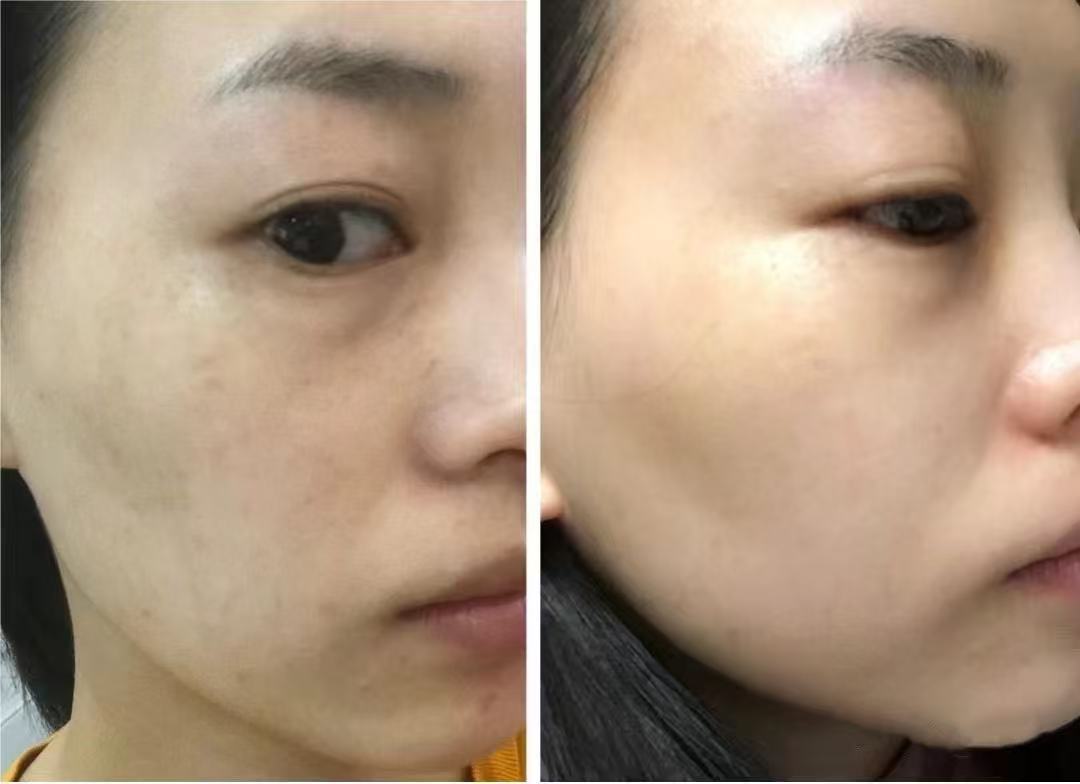 这是做了一个疗程之后的对比图,脸上的瘢痕基本不见了,肌肤也更光滑,紧致,效果还是比较明显的。