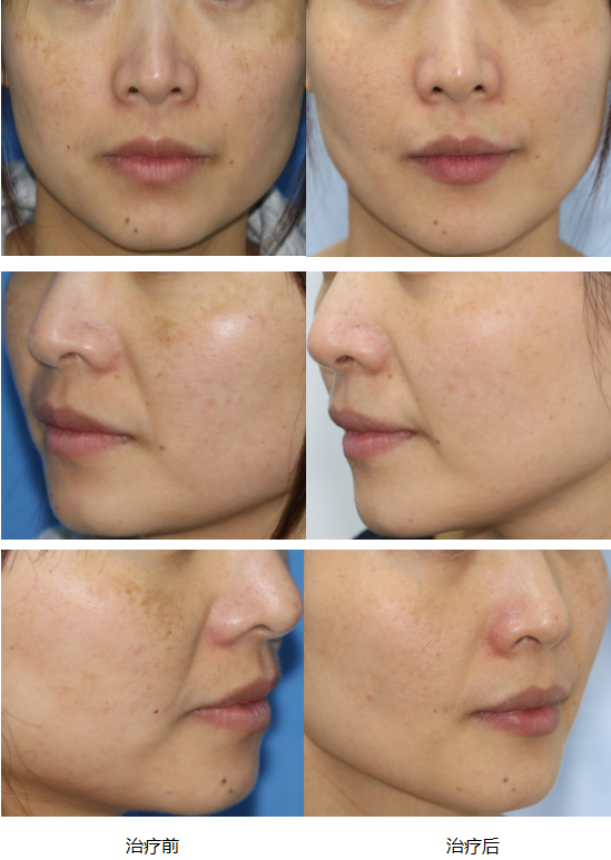 淡化色斑:利用光子能量令色素颗粒崩解汽化,再由微循环将其排出体外,对表浅的色素沉着、晒斑、雀斑等均有很好的效果。