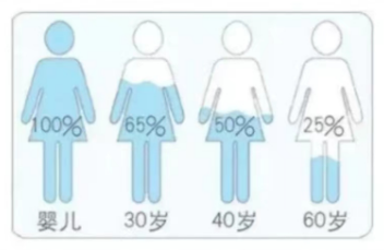 人体进入老化进程后,胶原蛋白和玻尿酸的制造速度都会逐年降低;0-20岁时人们体内玻尿酸的含量是100%-80%。从25岁开始人体皮肤内的透明质酸就会开始流失, 30岁时只剩下幼年期65%60岁时只剩下25% 皮肤会逐渐失去弹性和光泽,