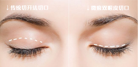 【微痕双眼皮】是一种痕迹隐秘、几近无痕的重脸术:传统切开法在重睑褶皱线处做切口,较易留下痕迹,而“微痕双眼皮术”切口定位在上睑缘附近